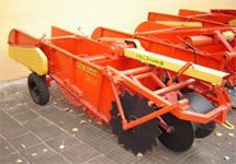 Используется на небольших участках, занятых под картофель. Уложенные в валики клубни просушиваются и подбираются вручную. Картофелекопатель предназначен для работы на легких и средних почвах, засоренность камнями до 9 тонн на гектар. Наличие боковых дисков снижает тяговое сопротивление при подъеме подрезанного пласта земли на элеваторы.